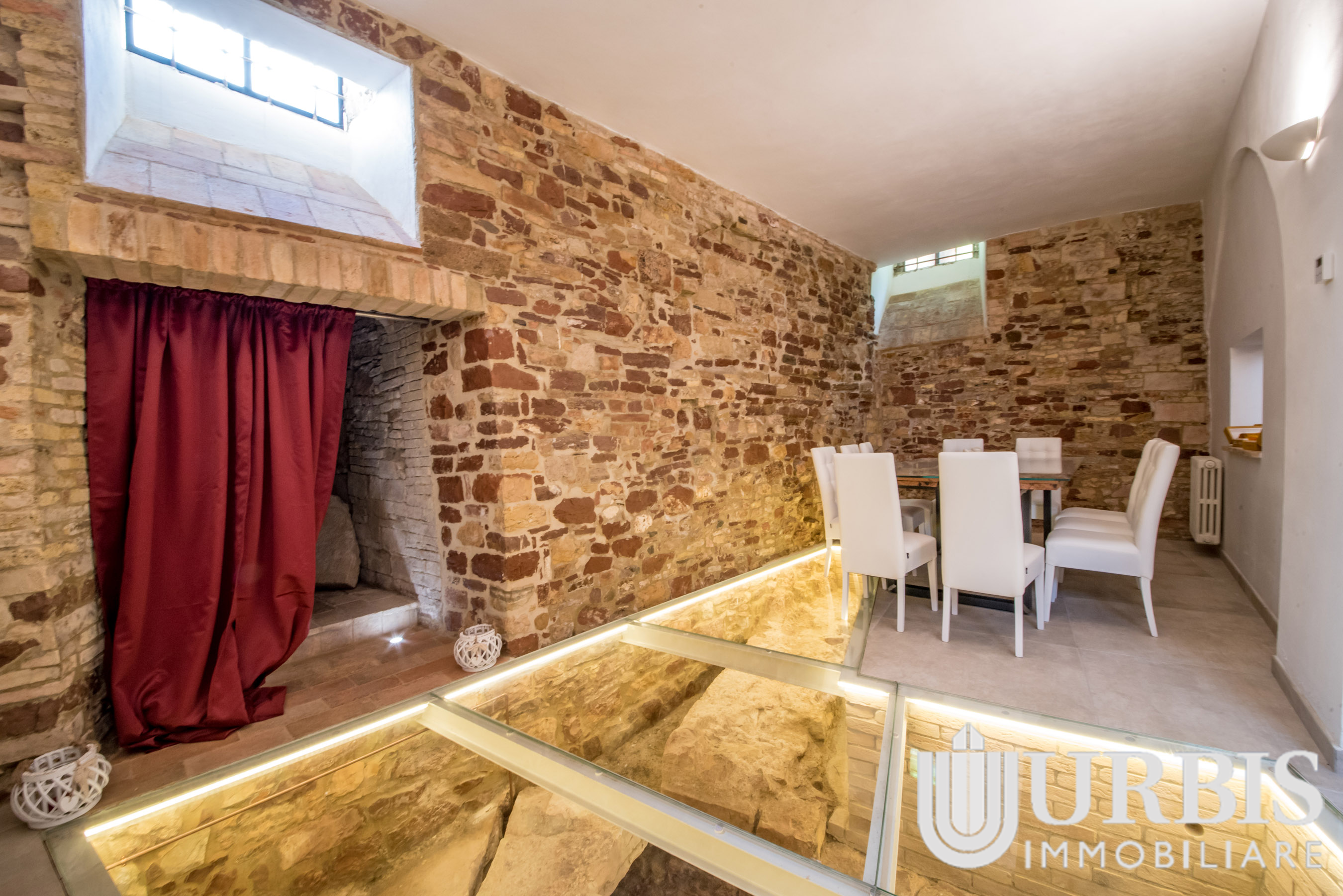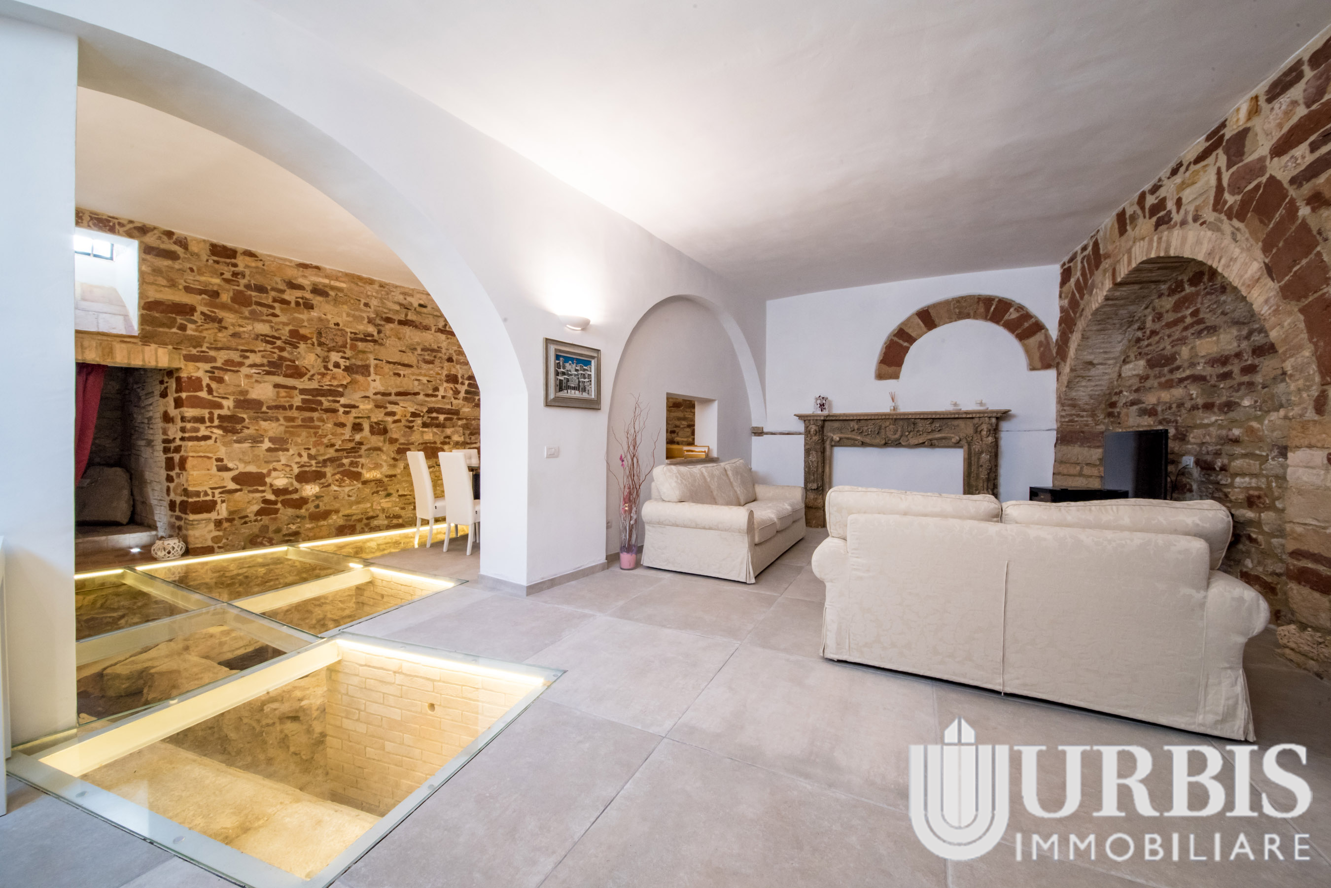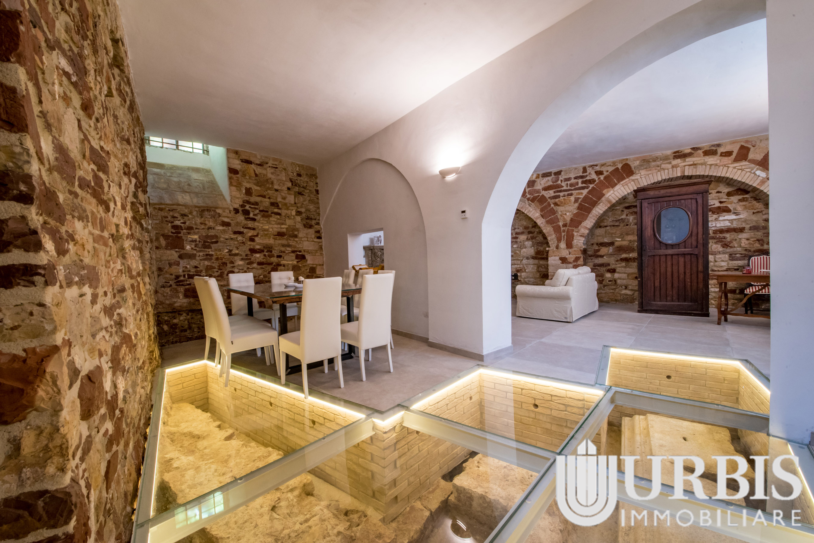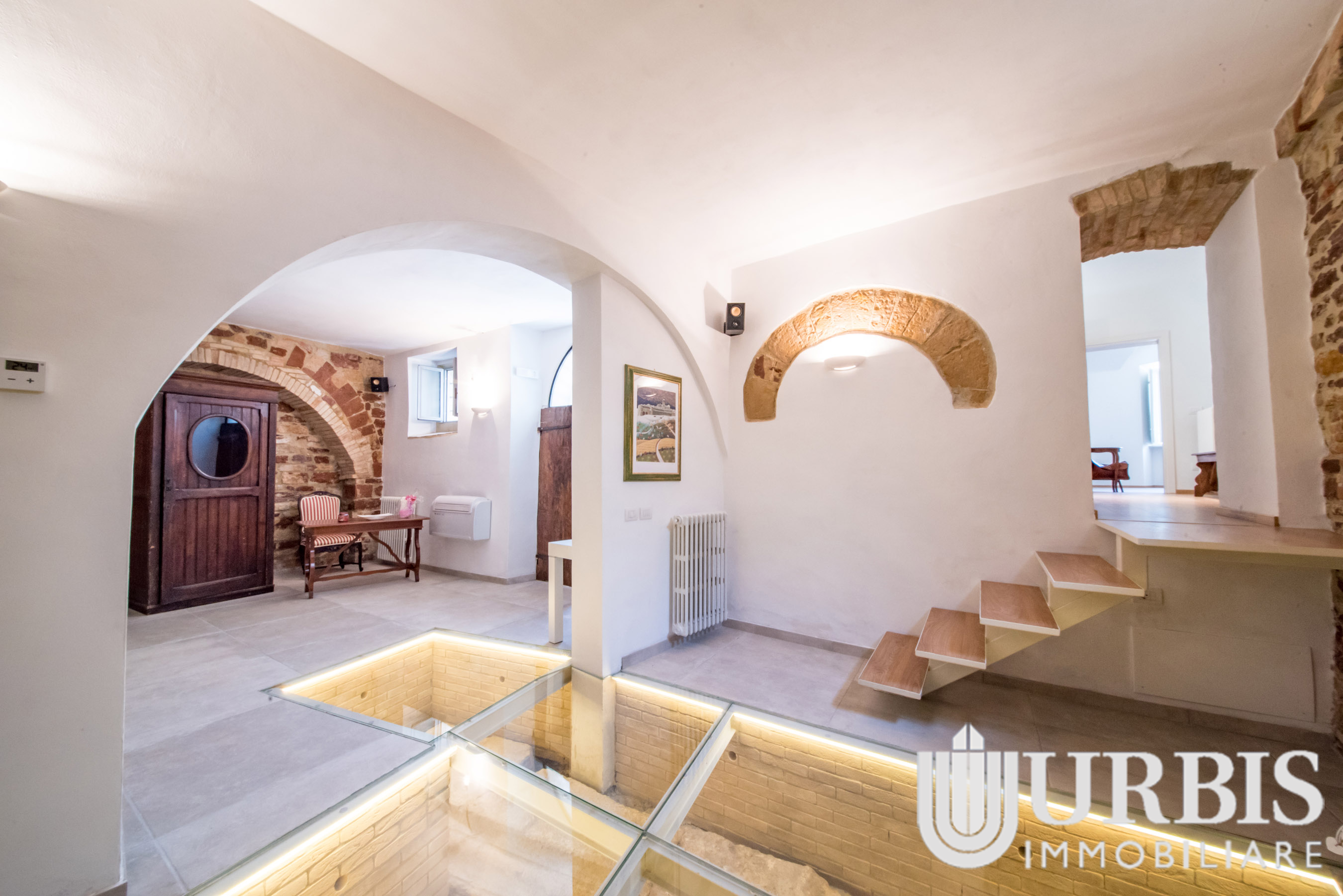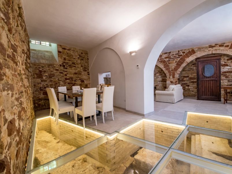 Durante i lavori di ristrutturazione sono emersi reperti di epoca romana risalenti al I secolo a.C., oggi perfettamente integrati nell’abitazione e valorizzati da un suggestivo pavimento in vetro che ne consente la visione, trasformando la casa in un vero e proprio spazio di charme storico.